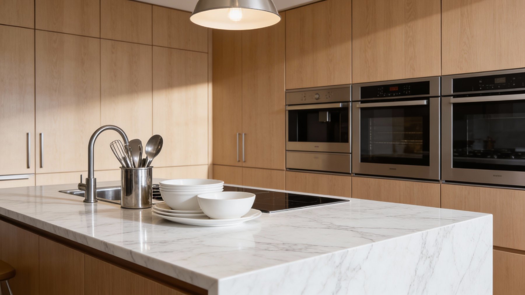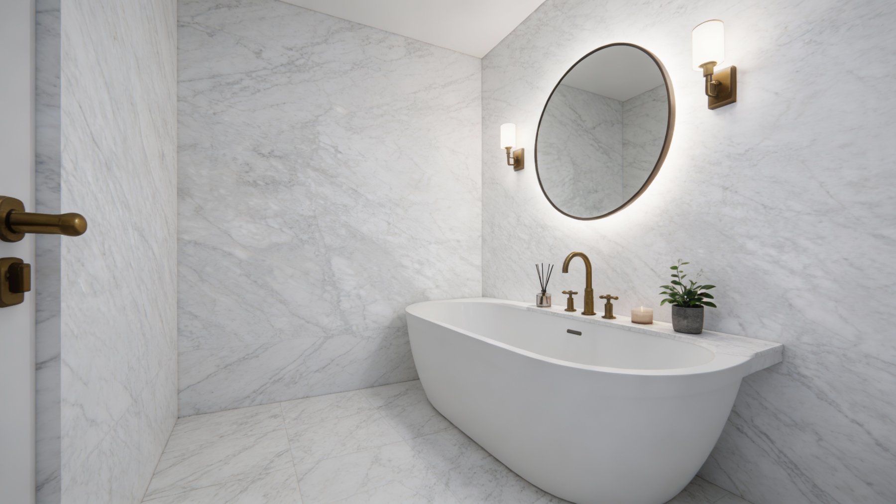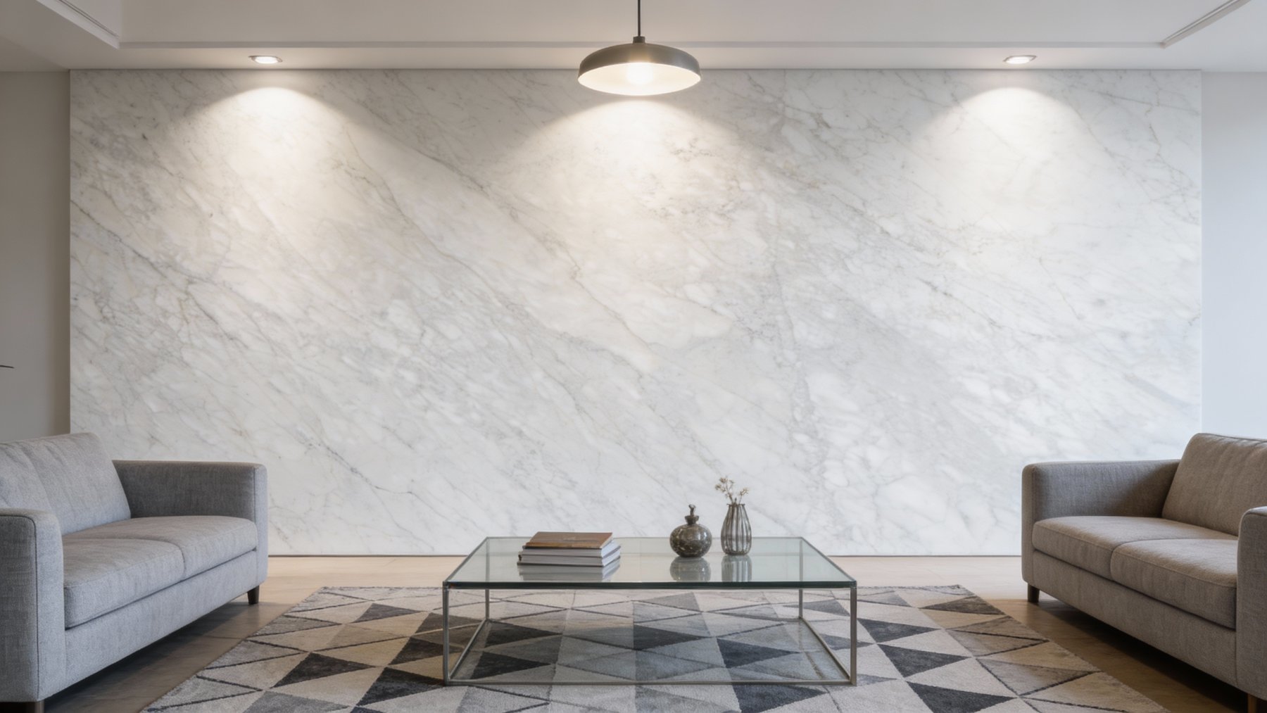 表面质感**细腻莹润**,触感应是光滑如玉的温润触感,带有柔和内敛的自然光泽;细看之下,纹理间隙中隐约可见细微的晶体反光点,为石材增添了精致的细节层次,既保留了天然石材的质朴感,又兼具轻奢高级的细腻工艺感,整体质感典雅而不失灵动。