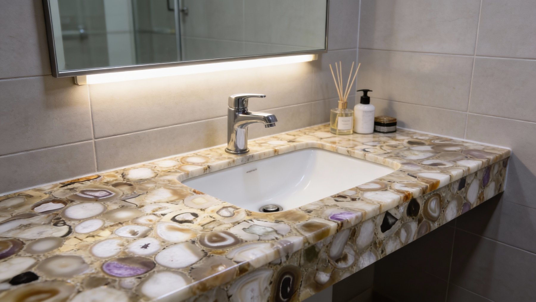 表面经抛光后呈现**细腻温润的玉石光泽**,部分区域带半透明通透感,似凝脂般莹润;环状纹理色彩过渡自然柔和,边缘清晰却不生硬;触感应光滑无颗粒,兼具石材的坚实与玉髓的温润细腻,质感高级且富有肌理层次,非粗糙石材可比。