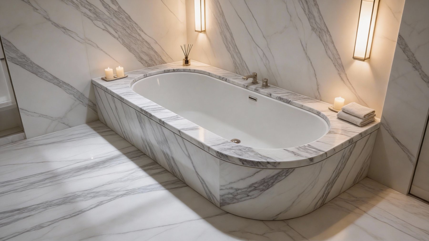 这款石材以**纯净浅白**为基底,基调中隐约透着极淡的暖灰色调,整体色泽清新通透,如同清晨薄雾下的白璧,既保持了白色系的干净雅致,又因细微的灰度晕染避免了纯白的单调感,营造出柔和舒缓的视觉氛围。