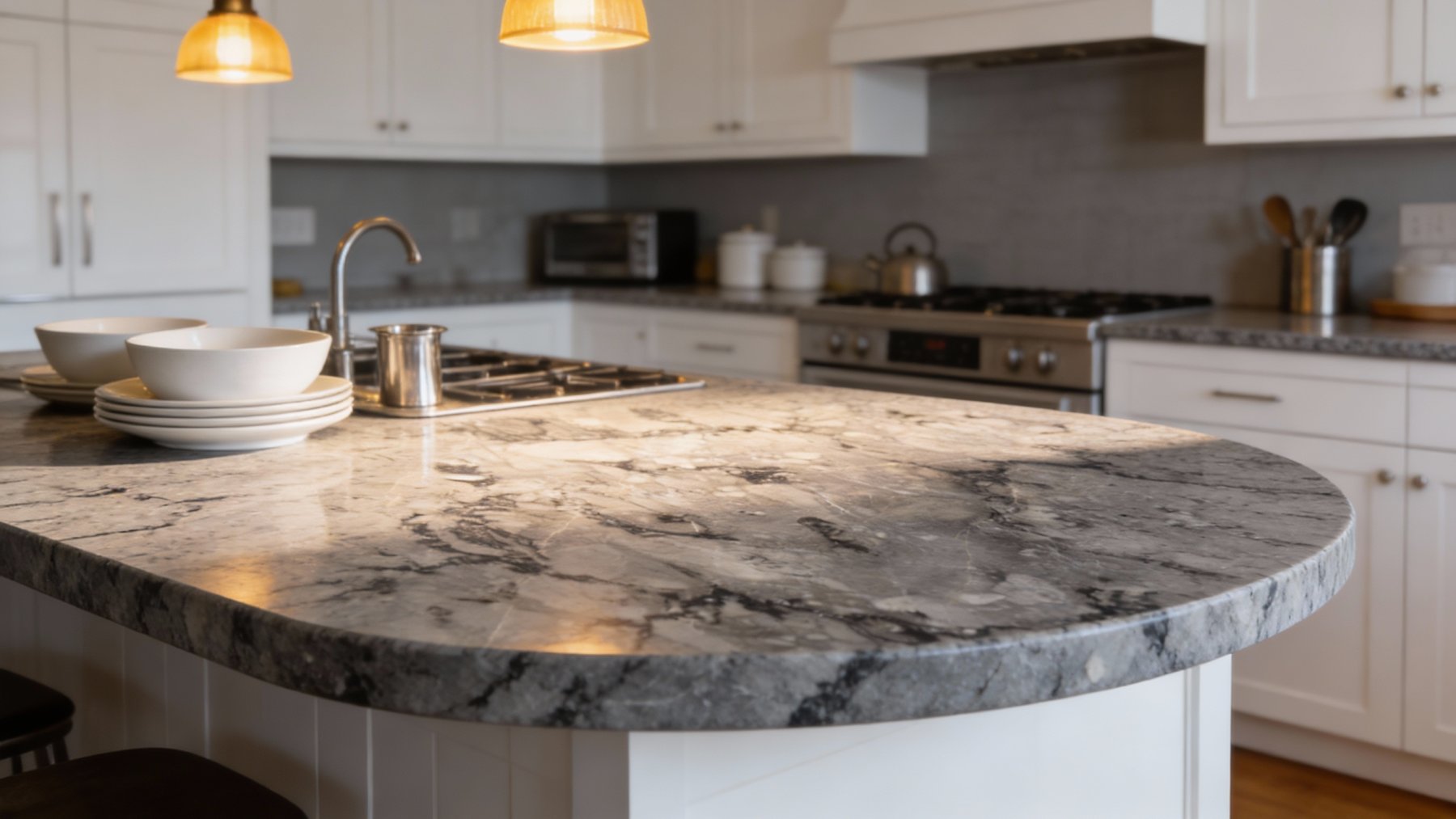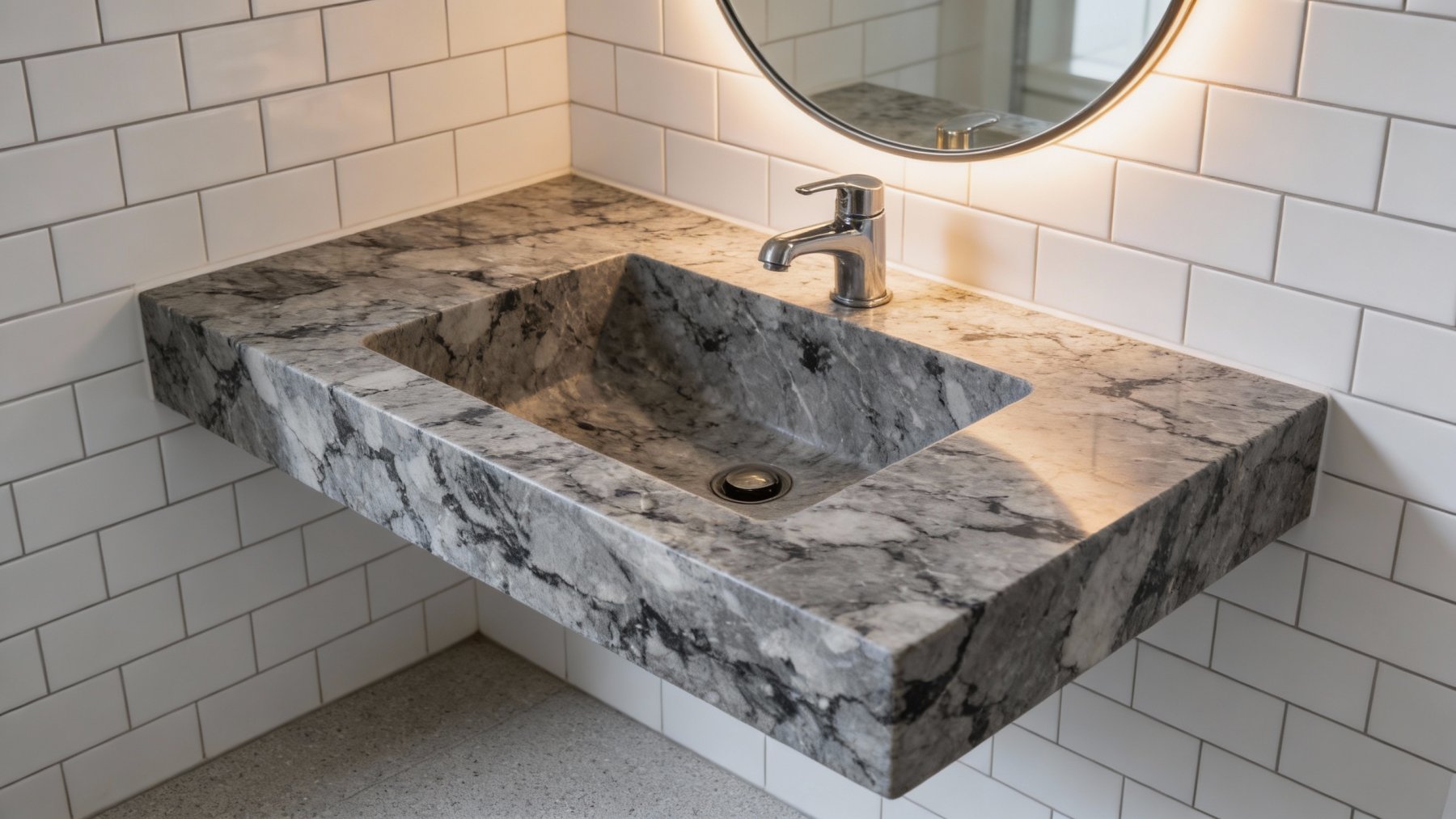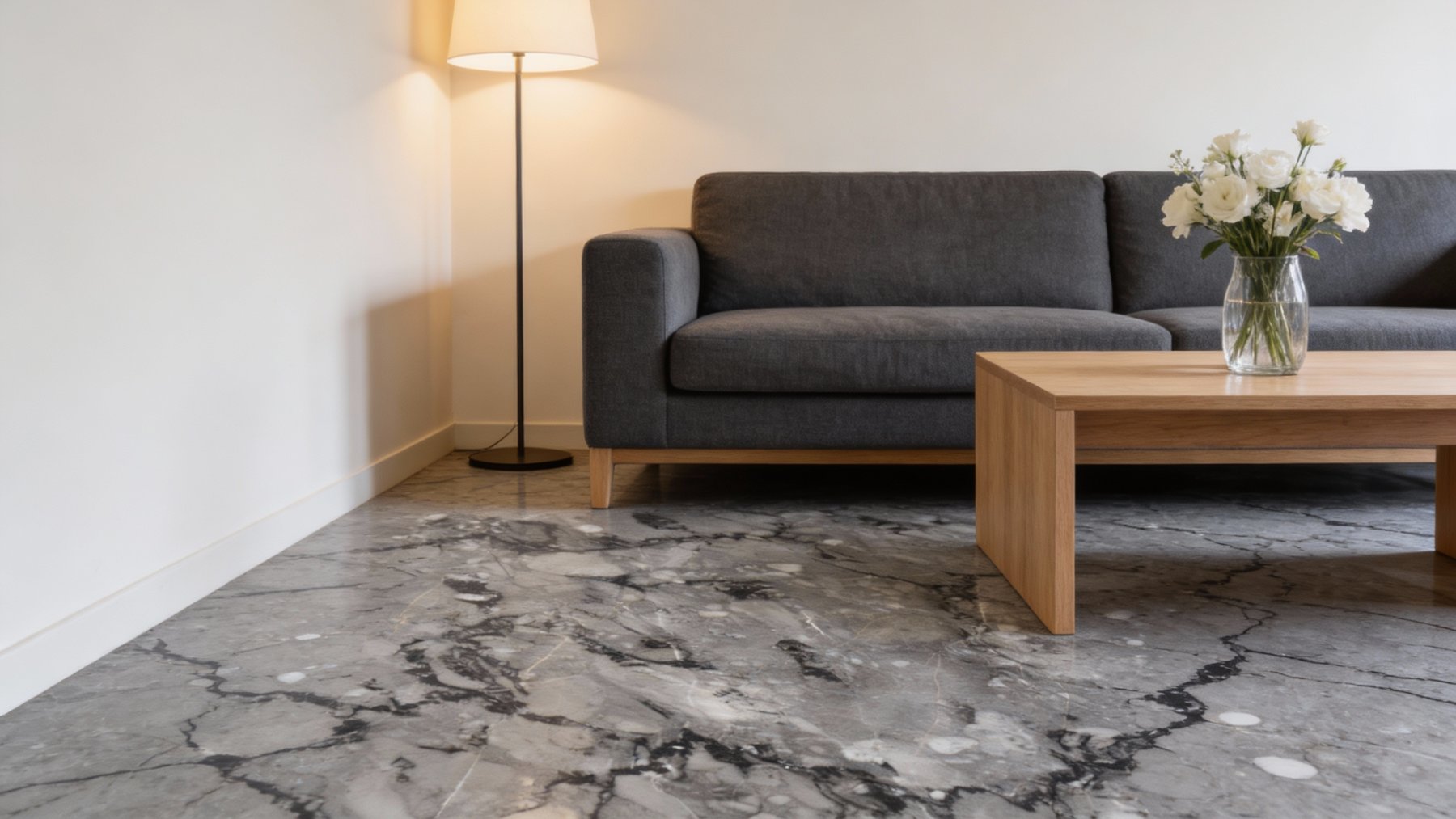 纹理呈现天然石材的**随性流动感**:黑色脉络状纹理粗细交错,或如蜿蜒溪流般舒展蜿蜒,或如墨色晕染般聚散交织;其间点缀着细碎的白色斑点,似星点洒落于灰黑肌理中,与主色调相互映衬。整体纹理无规则却暗含韵律,打破了单调感的同时,传递出自然天成的艺术张力,宛如一幅水墨写意画。